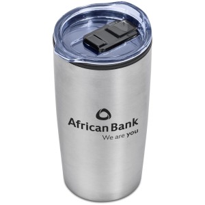 The industrial-style design of this tumbler makes it an attractive option for the right design or message. It features a stainless steel outer with a pp inner, so it will keep your drink hotter or colder for longer.